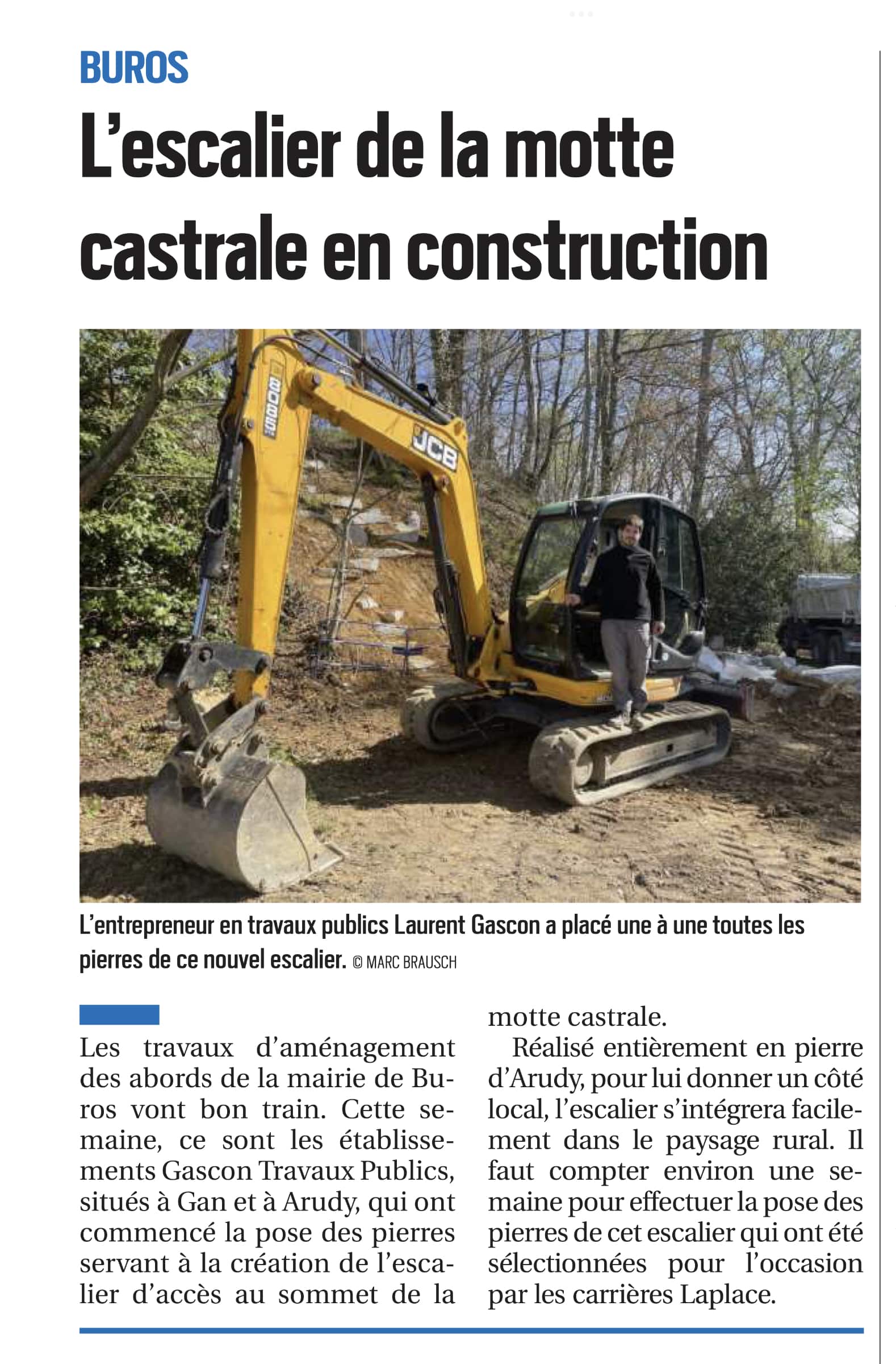 L’escalier de la motte castrale en construction